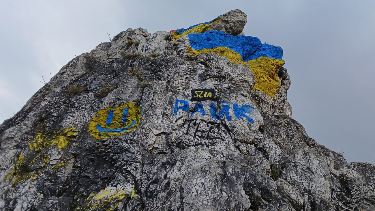 Valaki sárga-kékre festette a Tündér-sziklát.